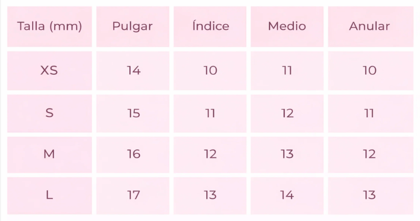 En cuanto a los Sets Pro, al realizar tu compra podrás elegir entre talla S, M o G. En cada publicación encontrarás una imagen con las medidas exactas del ancho y largo de cada uña. Para elegir tu talla, mide el ancho de tu uña natural y selecciona la talla cuyo número coincida con tu medida.
